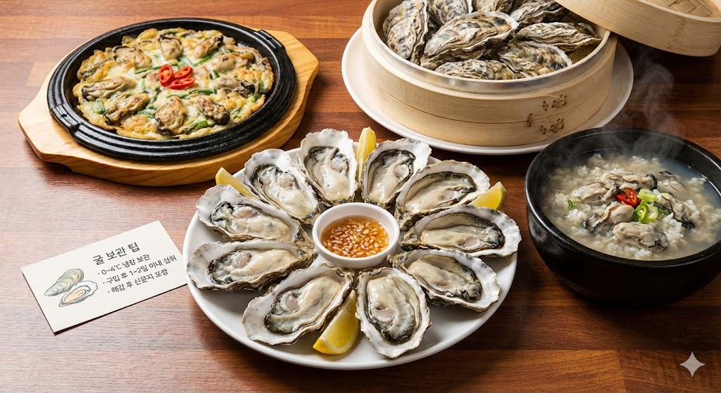 굴은 생굴, 굴전, 굴국밥, 굴찜 등 다양한 방식으로 즐길 수 있습니다. 생으로 섭취할 경우에는 반드시 신선한 상태에서 레몬즙 또는 식초를 곁들여 먹는 것이 좋습니다. 조리할 때는 너무 오래 익히지 않아야 영양소 파괴를 최소화할 수 있습니다.