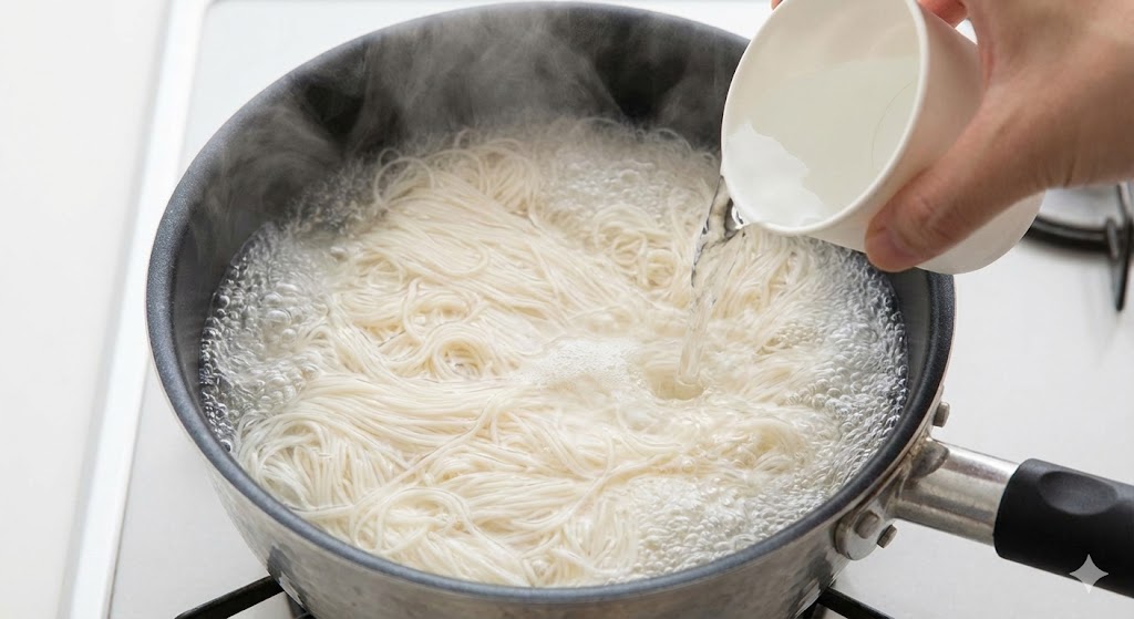 소면 삶을 때 넘치기 쉬운데, 물 조절만 잘해도 식감이 완벽하게 살아납니다.