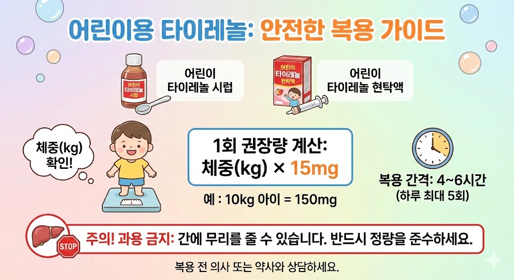 - 15mg/kg 기준으로 4~6시간 간격을 두고 복용합니다.